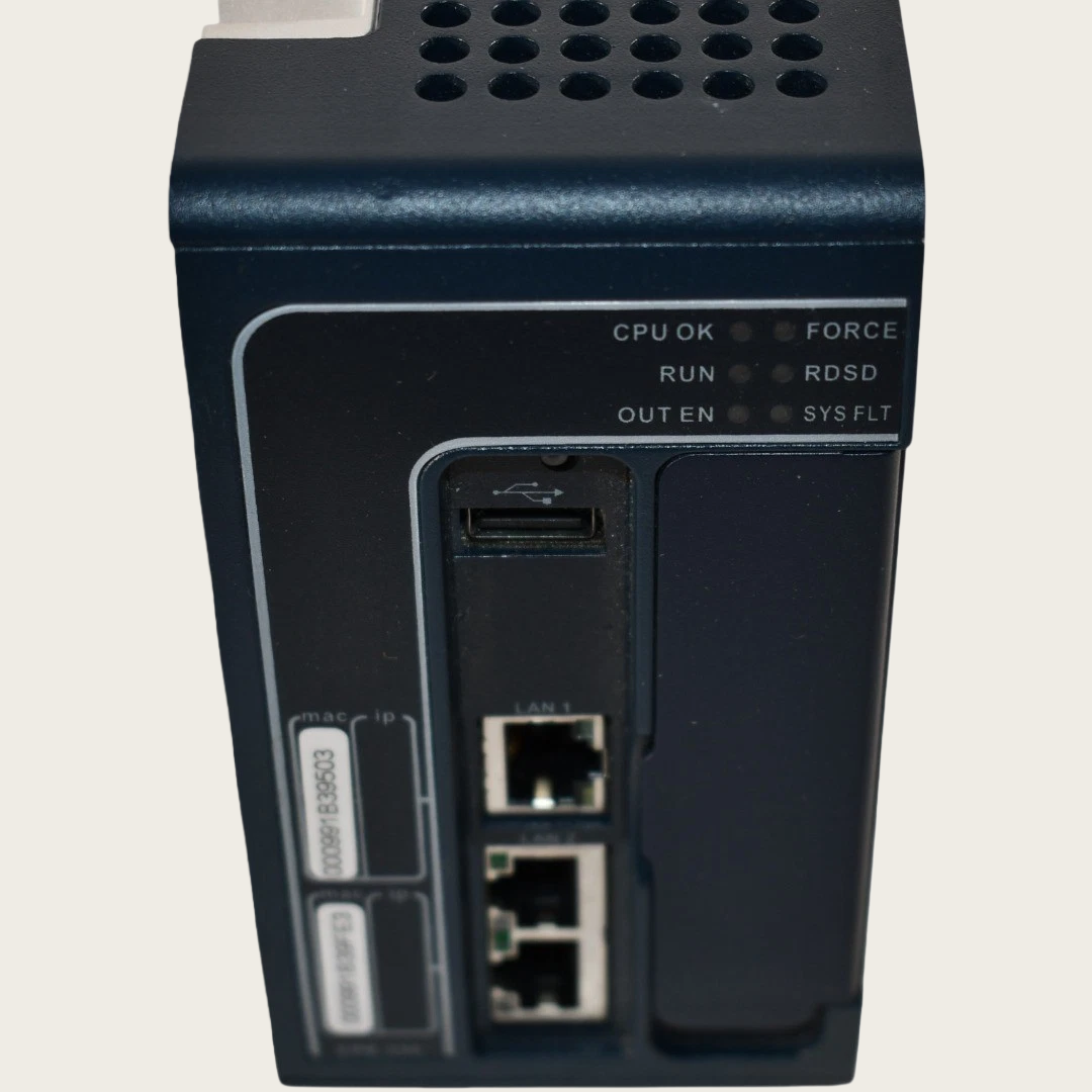 This CPU module features 30 MB of user memory for storing control programs (such as ladder logic, structured text, function block diagrams), tags, and variable data. The large memory capacity allows for the development of very large and complex applications without space constraints.